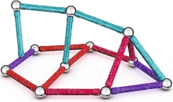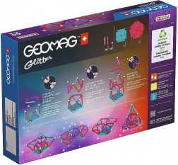 De glinsterende Geomag Glitter-bouwset biedt eindeloze bouwmogelijkheden dankzij sterke magneten en kleurrijke onderdelen met glitereffect. Kinderen oefenen op speelse wijze natuurkunde, geometrie en ruimtelijke waarneming terwijl ze originele modellen maken, van eenvoudige vormen tot complexere constructies. Het materiaal van 100% gerecycled plastic is duurzaam en milieuvriendelijk.
