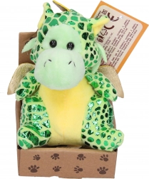 Deze pluchen draak brengt plezier met zijn glinsterende afwerking en compacte formaat van 13 cm, waardoor hij makkelijk in een rugzak past of op een plankje kan staan. De zachte stof voelt prettig aan en nodigt uit om te knuffelen, terwijl de heldere kleuren hem zowel tot een aantrekkelijke decoratie als een reisgenoot maken.