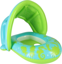 Geniet zorgeloos van zomers waterplezier. De kinder-zwembadleunstoel met afneembare opblaasbare luifel beschermt de gevoelige huid van het kind tegen zonnestralen en zorgt voor aangename schaduw in het zwembad en aan zee.
