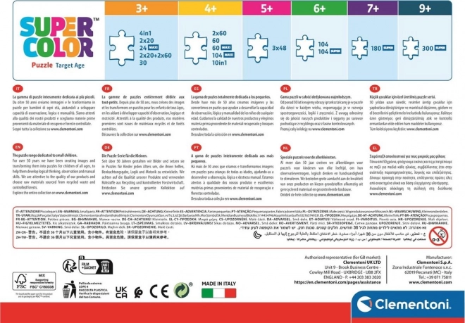 Clementoni hecht veel waarde aan ecologie: gebruikt gerecyclede materialen en vermijdt schadelijke additieven. De puzzelstukjes zijn nauwkeurig uitgesneden, passen perfect in elkaar en maken leren door spel makkelijker.