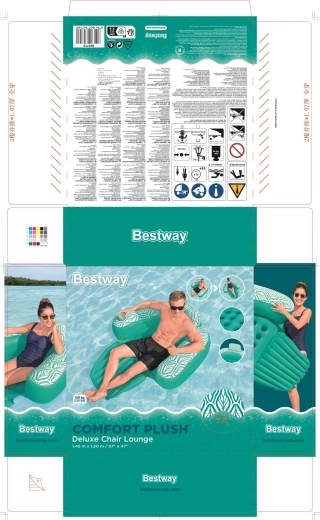 De Bestway Deluxe Comfort Plus opblaasbare stoel is ideaal voor zwembad, meer en kalme zee. De ergonomische rugleuning met geïntegreerd kussen ondersteunt rug en nek, terwijl de inklapbare voetsteun de zitting verhoogt en een comfortabele positie biedt bij zowel zitten als liggen. Het zijdezachte, waterbestendige Comfort Plus-oppervlak voelt prettig aan en oogt in het water nog aantrekkelijker.
