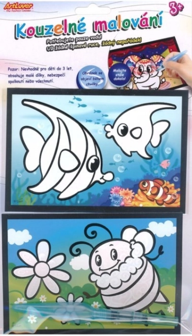 Magisch schilderen met water vermaakt zelfs de allerkleinste kunstenaars. Je hebt alleen water nodig en dankzij de speciale witte laag op de afbeeldingen, die verdwijnt wanneer deze vochtig wordt, kun je magisch gekleurde plaatjes maken. Zodra de afbeelding droog is, wordt deze weer bedekt met een witte laag, waardoor je opnieuw en opnieuw kunt schilderen.
