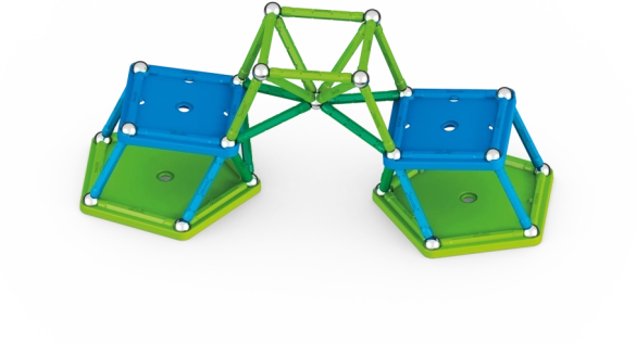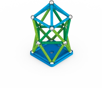 De set bevat magnetische staafjes en bolletjes die zorgen voor duurzaamheid en stabiliteit van elke constructie. Bevat twee speciale vierkante en twee vijfhoekige voetstukken.