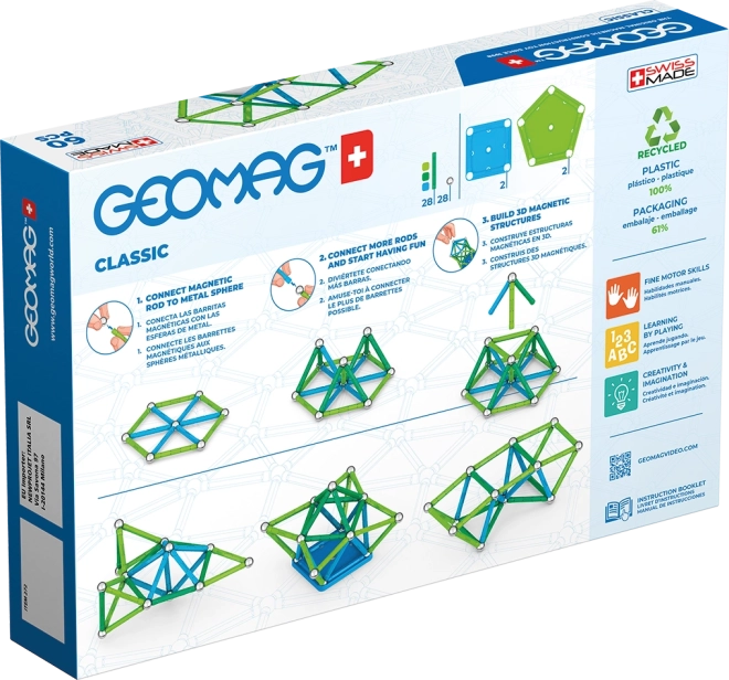 Klassieke magnetische blokken Geomag Recycled, 60 onderdelen