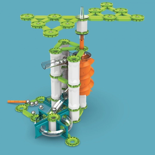 Bouw fascinerende zwaartekrachtbanen en kijk hoe metalen knikkers het hele mechanisme in beweging zetten. Het met de hand ronddraaien van de propeller activeert de verticale motor en brengt de constructie tot leven – ideaal voor het spelenderwijs ontdekken van natuurwetten en de principes van magnetisme.
