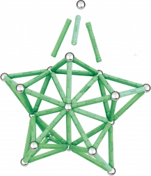 GEOMAG Glow biedt leuk en leerzaam bouwen met een indrukwekkende fosforescerende gloed. Laad de onderdelen op met licht, doe het licht uit en zie je creaties schitteren. De combinatie van magnetische staafjes en metalen kogels laat je bouwen van eenvoudige vormen tot complexe 3D-constructies.