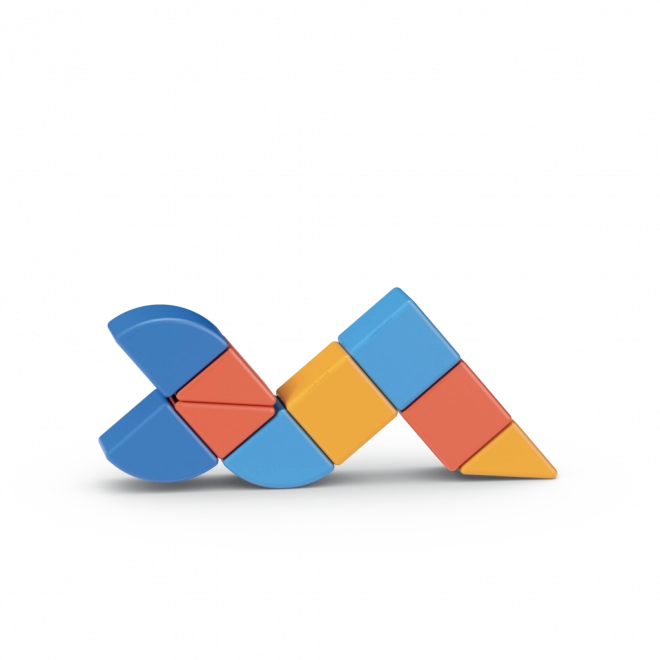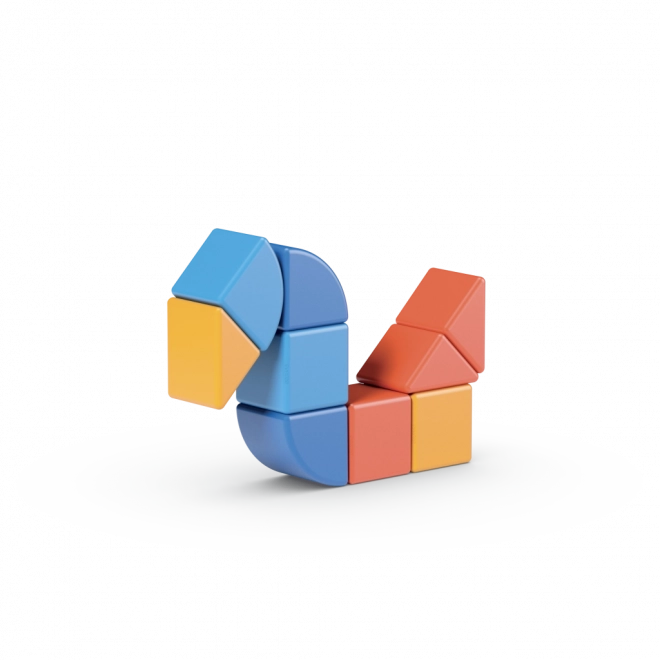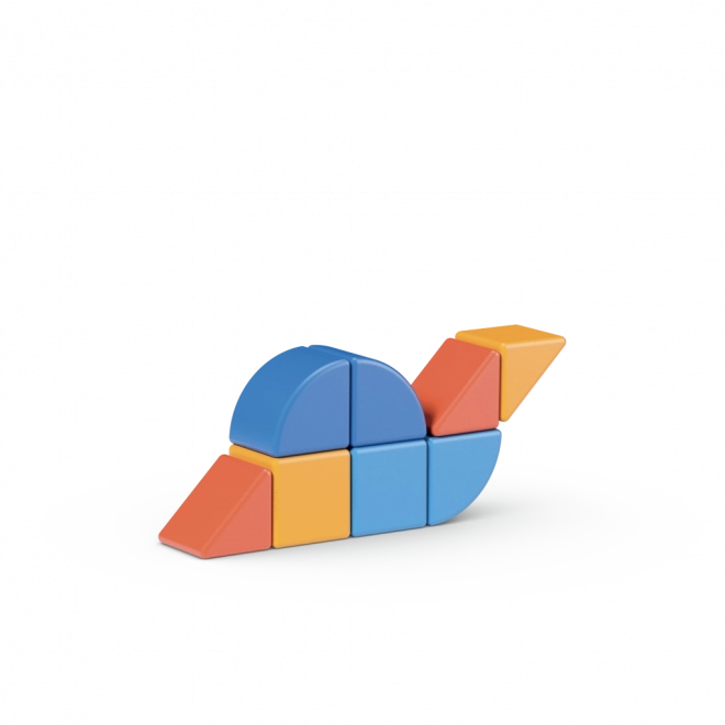 Naast klassieke kubusjes bevat de set ook twee unieke vormen die de bouwmogelijkheden vergroten en de fantasie prikkelen.