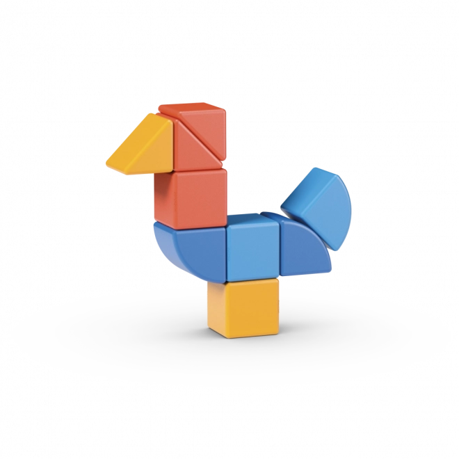 De bouwset is gemaakt van hoogwaardige en duurzame kunststof; de magneten zijn veilig in de onderdelen ingesloten. Spelen met Magicube is stil, schoon en eindeloos gevarieerd – ideaal voor thuis en voor peuter- en kleuteractiviteiten.