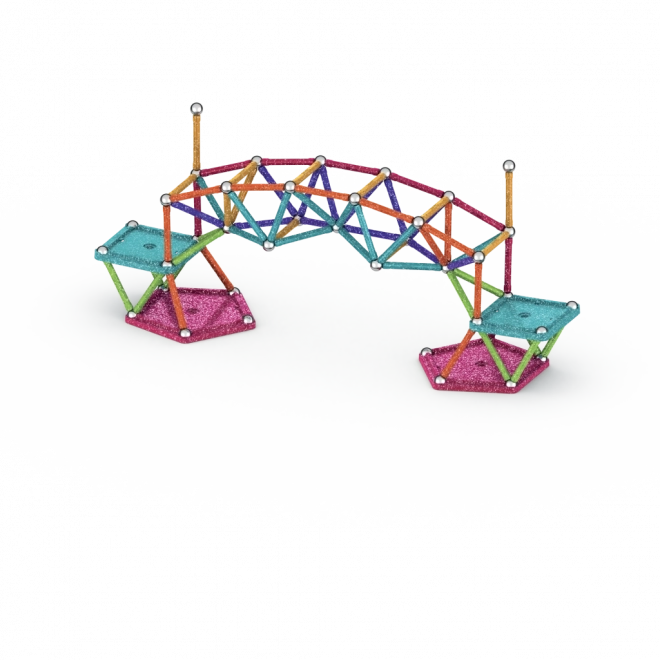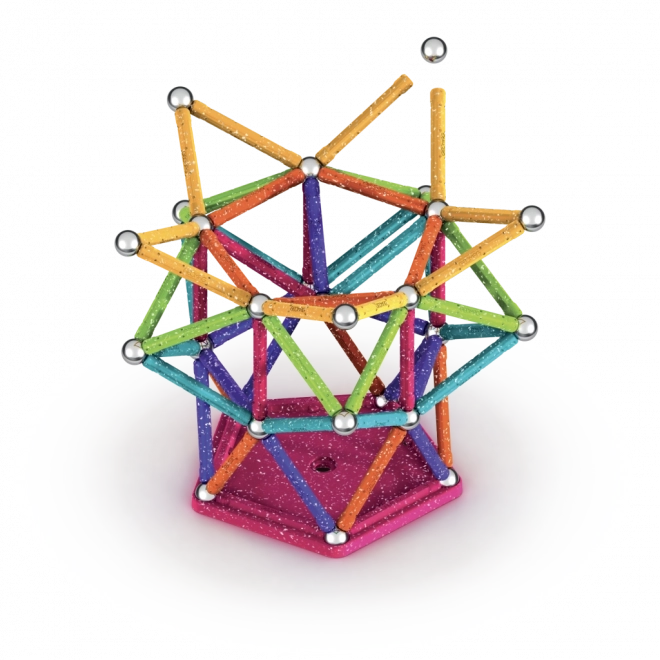 Met de Geomag Glitter bouwset bouw je gemakkelijk van eenvoudige vormen tot verfijnde 3D-constructies. Kleurrijke staafjes met glinstereffect in combinatie met stevige stalen kogels en bases maken stabiele en indrukwekkende modellen mogelijk die kinderen én volwassenen aanzetten tot experimenteren.