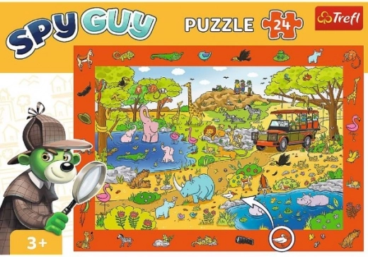 Ontdek plezier en train je scherpe blik met de observatiepuzzel SPY GUY Safari met 24 stukjes. De kleurrijke illustratie zit vol details en verborgen elementen die kinderen na het leggen van de puzzel kunnen zoeken aan de hand van aanwijzingen aan de rand. Een geweldige keuze voor de ontwikkeling van verbeeldingskracht, geheugen en observatievermogen.