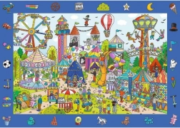 Dankzij de doordachte illustratie en heldere kleuren ondersteunt de puzzel het visuele waarnemen, logisch redeneren en de fijne motoriek. Ideaal voor gezellige momenten met het gezin of rustig spelen alleen. De stevige stukjes klikken goed in elkaar, leggen prettig en belonen met een boeiende scène met draaimolens, een luchtballon en veel vrolijke figuurtjes.