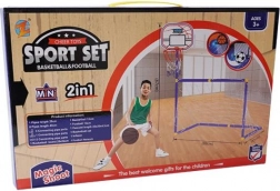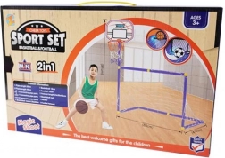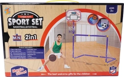 De set stimuleert de ontwikkeling van coördinatie, precisie en samenwerking. In de verpakking zitten twee ballen (voetbal 14 cm, basketbal 12 cm) en een pompje, zodat je direct na het monteren kunt beginnen met spelen.