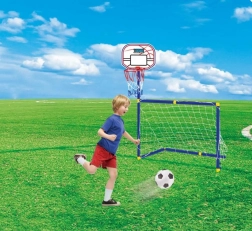 Deze 2-in-1 sportset voor kinderen combineert een voetbaldoel en een basketbalring, zodat kinderen op elk moment kunnen kiezen of ze doelpunten of mandjes willen scoren. Dankzij de compacte afmetingen (doel 88 × 55 × 45 cm, basketbalring 87 cm hoog) is hij geschikt voor de kinderkamer en de tuin.