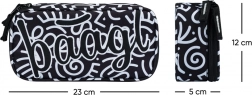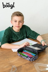 Dit etui heeft een zwart-wit textieluiterlijk met abstracte patronen en de tekst 'Baagl'. Het stijlvolle ontwerp is ideaal voor degenen die ook op schoolartikelen modieus willen zijn.
