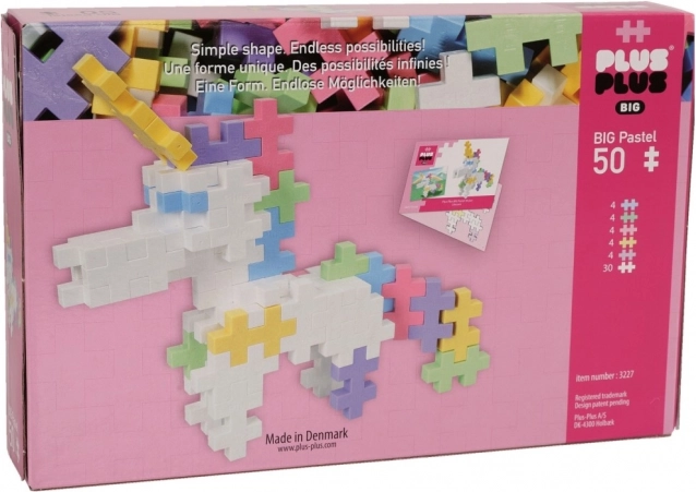 De Plus-Plus BIG bouwset in pastelkleuren biedt veilig en eenvoudig koppelen van grote stukken die perfect in kinderhanden passen. Kinderen kunnen de handleiding met afbeeldingen volgen om een schattige eenhoorn te bouwen, of eindeloze variaties van eigen modellen creëren.