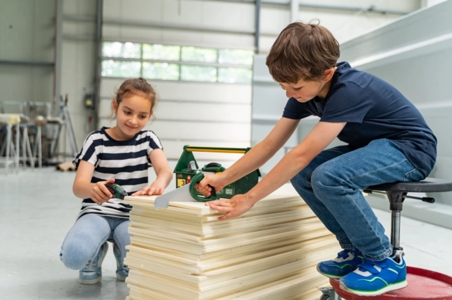 Spelenderwijs ontwerpen, schroeven en “zagen” bootst echt werk na en ontwikkelt handigheid en verbeeldingskracht.