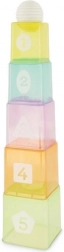 Bekers in verschillende maten zijn eenvoudig tot een stabiele toren te stapelen en helpen grijpen, coördinatie en geduld te ontwikkelen.