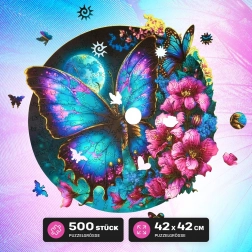 Ontdek de magie van puzzelen met de houten puzzel met vlindermotief – een premium legpuzzel van FSC®-gecertificeerd hout met een dikte van 5 mm, met 500 unieke stukjes die nauwkeurig zijn laser-gesneden en voorzien van een heldere UV-digitale print. Geniet van uren ontspanning, ontwikkeling van logica en fijne motoriek en verander het voltooide kunstwerk in een stijlvolle wanddecoratie – de verpakking bevat alles wat je nodig hebt.