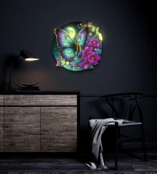 Deze ronde houten puzzel met een indrukwekkend blauw-paars vlindermotief biedt haarscherpe kleuren dankzij UV-digitale print en zorgvuldig vakmanschap. Elk stukje is uniek, glad aan te raken en sluit exact aan, wat zorgt voor aangenaam en vloeiend puzzelplezier. Met een diameter van 42 cm wordt de voltooide puzzel een opvallende muurdecoratie.