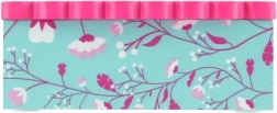 De turquoise basis met bloemen en het roze deksel vormen een speelse maar smaakvolle toevoeging aan zowel de kinderkamer als de slaapkamer.
