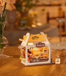 De Berenbakkerij is een charmante miniatuur voor iedereen die van knutselen en design houdt. De bouwset bevat alles wat je nodig hebt, inclusief lijm en gereedschap; voeg alleen een schaar toe. Zodra je de LED-verlichting inschakelt, verandert de bakkerij in een warm, gezellig lichtpuntje dat elk detail van de vitrines, bordjes en het gebak benadrukt.