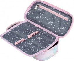 Stijlvolle BAAGL Sunset etui van gerecycled materiaal met een praktische uitklapbare scheidingsflap, interne ritszak en vak voor het lesrooster. Afgewerkt met kwalitatieve YKK-ritsen voor een lange levensduur. Zonder vulling.