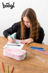 Op zoek naar een duurzame en overzichtelijke etui die het dagelijkse schoolgebruik aankan? De BAAGL Sunset combineert modern design met functionaliteit. Dankzij de uitklapbare binnenflap heb je schrijfwaren altijd geordend en binnen handbereik, terwijl de interne ritszak kleine spullen veilig opbergt.