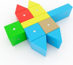 7 vormen en 5 opvallende kleuren inspireren tot het maken van dieren, voertuigen en abstracte modellen. De handleiding helpt om te starten en de fantasie te laten groeien.