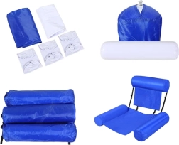 Hoogwaardig PVC dat slijtvast en prikbestendig is en sneldrogende, ademende stof zorgen voor een lange levensduur en comfort tijdens gebruik. Montage is eenvoudig: je hoeft alleen twee kussens op te blazen en ze in de daarvoor bestemde zakken te schuiven. Dankzij de universele maat en het moderne design is het geschikt voor op vakantie en voor het thuiszwembad.