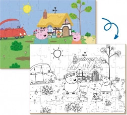 Deze dubbelzijdige puzzel biedt kinderen dubbel zoveel plezier. Eerst leggen ze een vrolijke afbeelding met personages uit de populaire serie Peppa Pig, daarna kunnen ze de keerzijde na het leggen naar eigen fantasie inkleuren.
