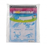 Ontdek de magie van schilderen met water met dit unieke kleurboek met vier herbruikbare pagina’s met dinosaurusmotieven. Kinderen gebruiken de waterpen om verborgen kleuren op de afbeeldingen te onthullen; na het drogen worden ze opnieuw transparant voor nieuwe kunstwerken.