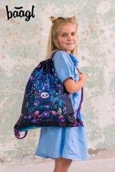 De zak sluit met stevige koorden die tegelijk als schouderbanden dienen, zodat je hem makkelijk op je rug draagt. Er is ook een karabijnhaak voor snel vastmaken aan een boekentas of rugzak – zo vergeet je niets en heb je je handen vrij.