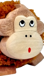 Elke aap is zorgvuldig gemaakt van verschillende soorten hout, wat zorgt voor zijn uniekheid en kwaliteit. Het gebruikte hout is niet geverfd om de natuurlijke schoonheid van het materiaal te benadrukken.