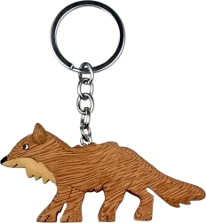 Deze grote vossensleutelhanger is met de hand gemaakt van tot wel vijf soorten natuurlijk hout met een van nature uiteenlopende tekening. Het hout is niet geverfd, slechts subtiel met de hand bijgewerkt om details te accentueren – zo ontstaat een unieke hanger die op sleutels en rugzakken echt opvalt.