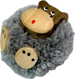 Deze originele magneet met nijlpaardmotief wordt met de hand gemaakt en met de hand gedetailleerd. Het lichaam is versierd met een zachte katoenen pompon, terwijl het gezicht en de details zijn gemaakt van natuurlijk verschillend gekleurde exotische houtsoorten – broodvruchtboom (geel), tamarinde (lichtbruin), kassia (donkerbruin), aniba (roze) en gmelina arborea (wit). Het hout is niet geverfd; de kleur wordt bepaald door de natuurlijke structuur van de houtsoorten.