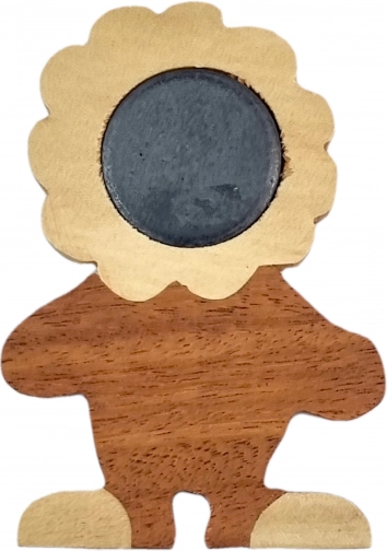 Deze elegante houten leeuwenmagneet blinkt uit door verfijnd vakmanschap en een natuurlijke esthetiek. Elk stuk is uniek dankzij de combinatie van wel vijf houtsoorten met hun eigen tinten – het resultaat is een harmonieuze, natuurlijk gekleurde decoratie zonder volledige verflaag.