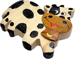 Deze houten koemagneet is een unieke decoratie die je interieur een speelse, natuurlijke charme geeft. Elk stuk is origineel, samengesteld uit tot wel 5 houtsoorten met een van nature verschillende kleur, zonder extra verf. Subtiele handbeschildering benadrukt de lieve uitstraling en het zorgvuldige vakmanschap.