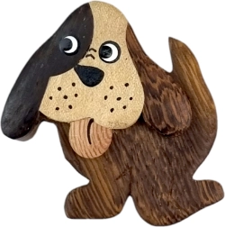 Een schattige houten magneet in de vorm van een hond die elke koelkast of magneetbord opvrolijkt. Combineert handgemaakt vakmanschap, natuurlijke materialen en precieze afwerking. Dankzij wel vijf soorten hout met verschillende tinten oogt hij origineel en tijdloos. Een geweldig decoratief element en cadeau voor liefhebbers van natuur en dieren.