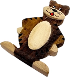 Deze houten tijgermagneet is een uniek accessoire voor de keuken of kinderkamer. Door de combinatie van tot vijf houtsoorten met van nature verschillende tinten oogt hij realistisch en origineel. Elk stuk is handgemaakt en met de hand bijgewerkt, waardoor het licht kan variëren – en juist dat maakt het bijzonder.
