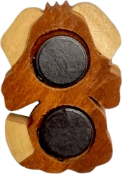 De magneet is samengesteld uit tot vijf houtsoorten met een natuurlijke kleurnuance. Fijne handmatige details benadrukken de authentieke uitstraling zonder de houtstructuur te verbergen.