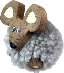 De decoratieve muizenkop van textiel en hout voegt charme toe aan etui en bureau en tovert een glimlach bij kinderen en liefhebbers van schattige accessoires.
