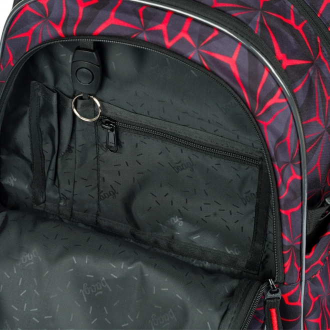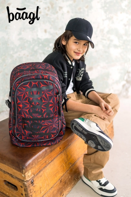 Stijlvolle en functionele schoolrugzak Baagl Core Red Polygon met ergonomisch gevormde rug, drie ruime vakken met organizer en een vak voor een 15" laptop. Dankzij het lage gewicht van 900 g, inhoud van 25 l en reflecterende elementen is hij ideaal voor dagelijks gebruik naar school. Gemaakt van sterk, waterafstotend gerecycled materiaal, met betrouwbare YKK-ritsen en praktische zijvakken.