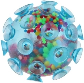 - Zuignappen op het oppervlak, gevuld met gekleurde bolletjes, antistress-effectbal