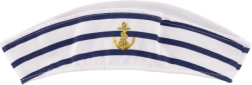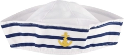 Stap de wereld van de zee in met een klassieke matrozenpet die opvalt door het smetteloze witte design, blauwe strepen en het geborduurde anker. De pet is gemaakt van een prettig textielmateriaal, zodat je hem zonder problemen de hele avond kunt dragen.