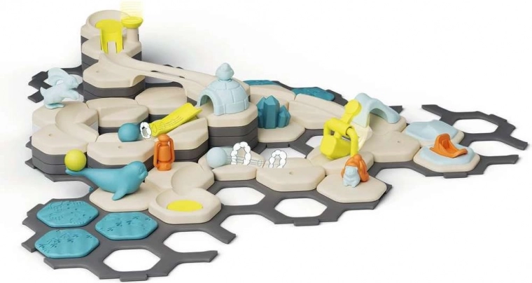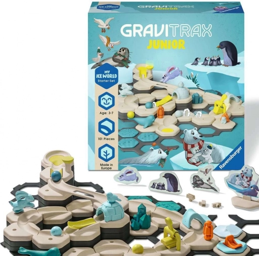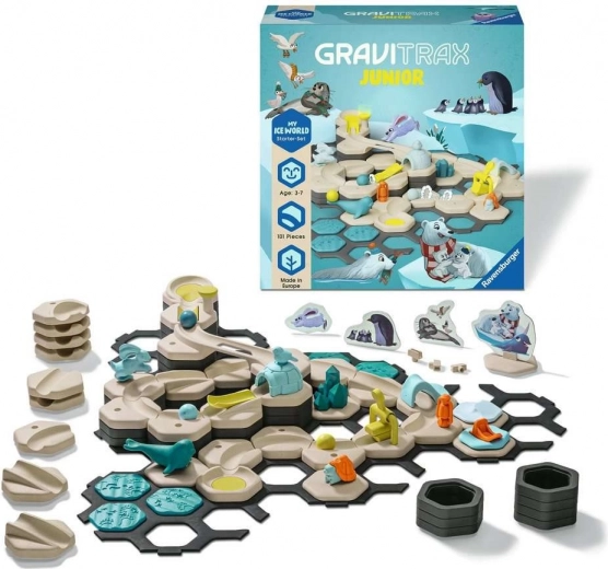 De GraviTrax Junior IJswereld startset is de ideale eerste stap in de interactieve wereld van knikkerbanen voor de allerkleinsten. Kinderen bouwen eenvoudig hun eigen ijzig koninkrijk, dat ze naar wens kunnen versieren en uitbreiden. Dankzij slimme actie-elementen zoals de Schommel en de Hamer is elke rit van de knikker anders en vol verrassingen.