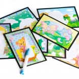 Ontdek creatieve pret zonder rommel! Met de set voor magisch schilderen met water kunnen kinderen keer op keer schilderen – alleen water is voldoende. Afbeeldingen komen tot leven in kleur zodra ze vochtig worden en keren na het drogen terug naar hun oorspronkelijke staat. Eenvoudig, veilig en herbruikbaar knutselen voor kleine kunstenaars vanaf 3 jaar.