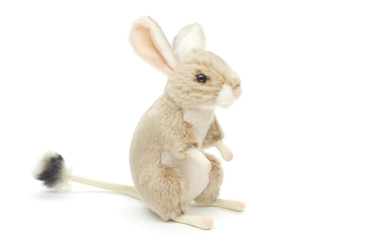 Deze pluchen jerboa in natuurlijke tinten is ontworpen voor veilig en prettig spelen. De zachte vacht, lichtroze pootjes en de lange staart met pluimpje maken hem tot een bijzonder schattige metgezel. Dankzij het compacte formaat van 18 cm ligt hij perfect in kinderhanden en is hij geschikt voor onderweg en in bed.