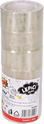 Set van transparante plakband met een breedte van 24 mm en een lengte van 30 m, ideaal voor dagelijks gebruik op kantoor of thuis. Elke verpakking bevat 6 stuks tape.