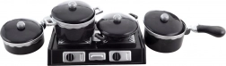 Bevat 3 pannen, een wokpan, 4 deksels, een fornuis en extra accessoires voor realistisch kookspel.