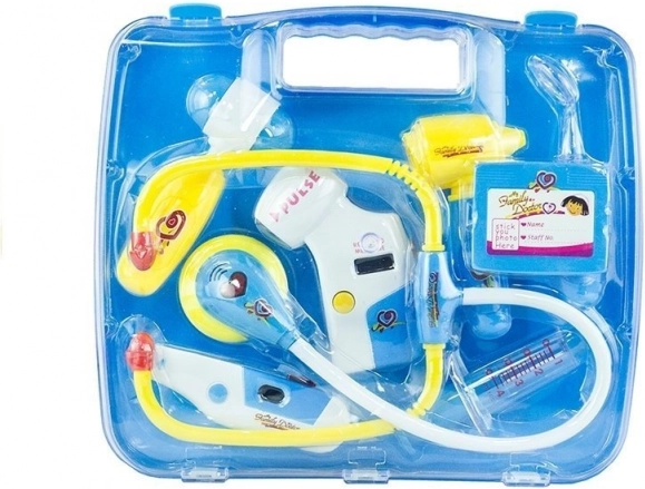 Deze meer‑delige set bevat alle instrumenten die onmisbaar zijn voor het werk van een arts. Het speelgoed is uitgevoerd in een neutrale kleurstelling bestaande uit blauw, wit en geel, waardoor het een perfecte set is voor broers en zussen – meisjes én jongens.